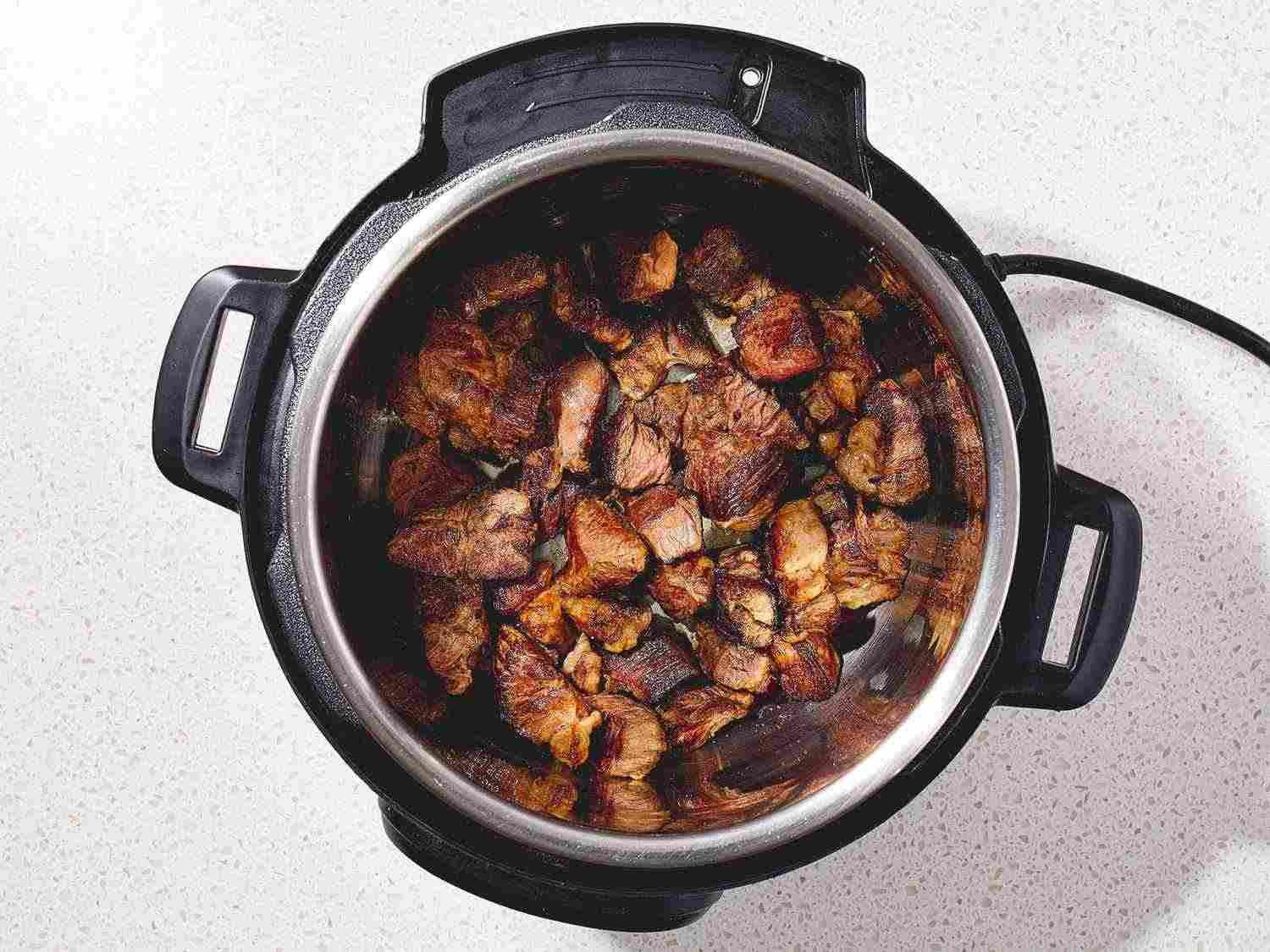 - Step 2:Turn on a multi-functional pressure cooker (such as Instant Pot) and select the Sauté function. Melt butter in the pot. Cook beef chuck cubes in batches until browned on all sides, about 5 minutes per batch. Dotdash Meredith Food Studios